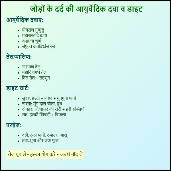 जोड़ों के दर्द की आयुर्वेदिक दवा और डाइट चार्ट?