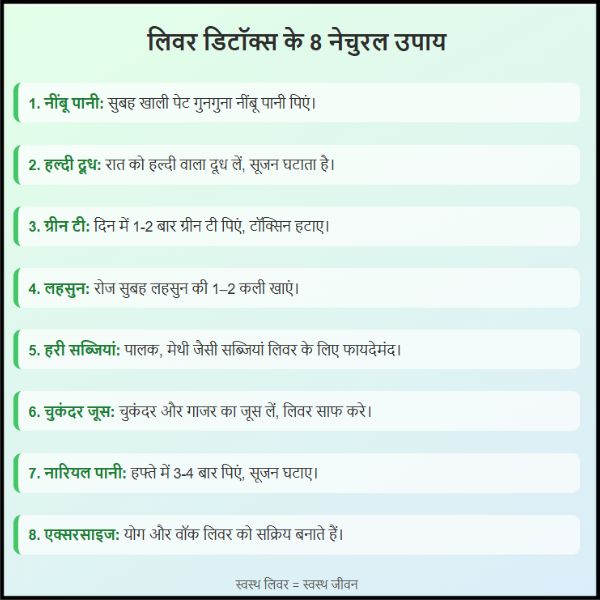 यहाँ हम 10 ऐसे प्राकृतिक और घरेलू उपाय बता रहे हैं, जो आपके लिवर को स्वस्थ और तंदुरुस्त रखने में मदद करेंगे। ये उपाय आसान, किफायती और पूरी तरह प्राकृतिक हैं। आइए जानते हैं इनके बारे में विस्तार से।