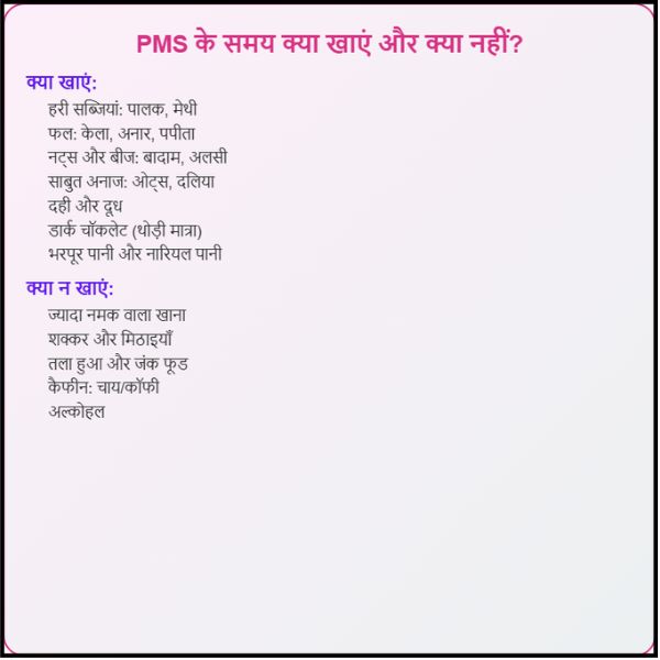 निष्कर्ष (Conclusion) : PMS के समय क्या खाना चाहिए और क्या नहीं?